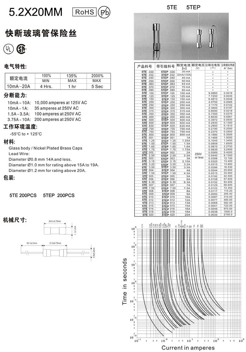 5.2X20mm玻璃快斷保險絲