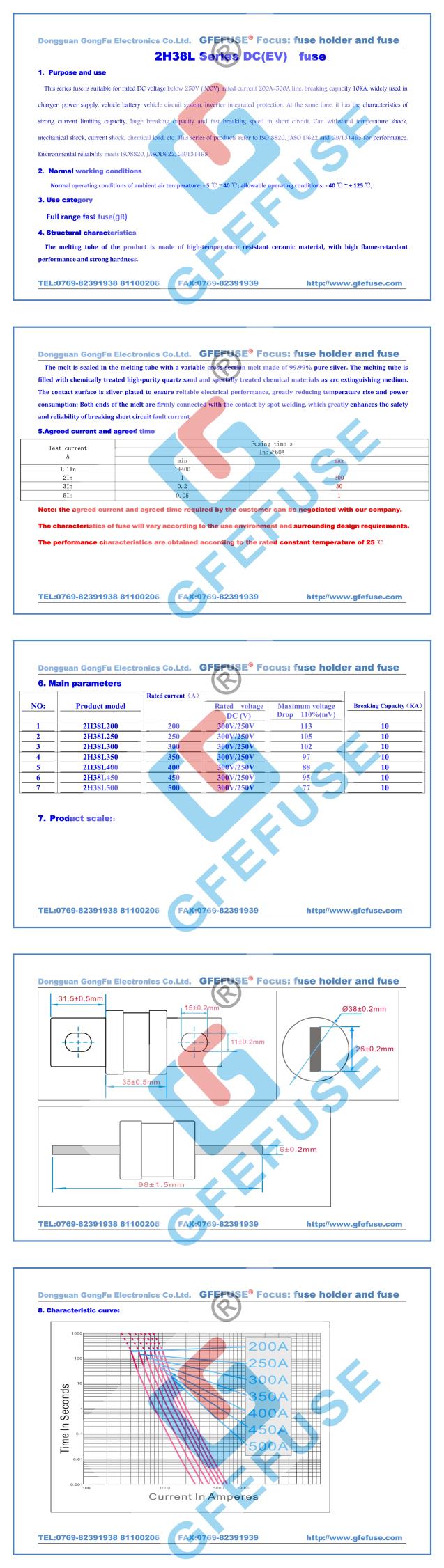 2H38L快速直流熔斷器 (200A-500A)250V300V