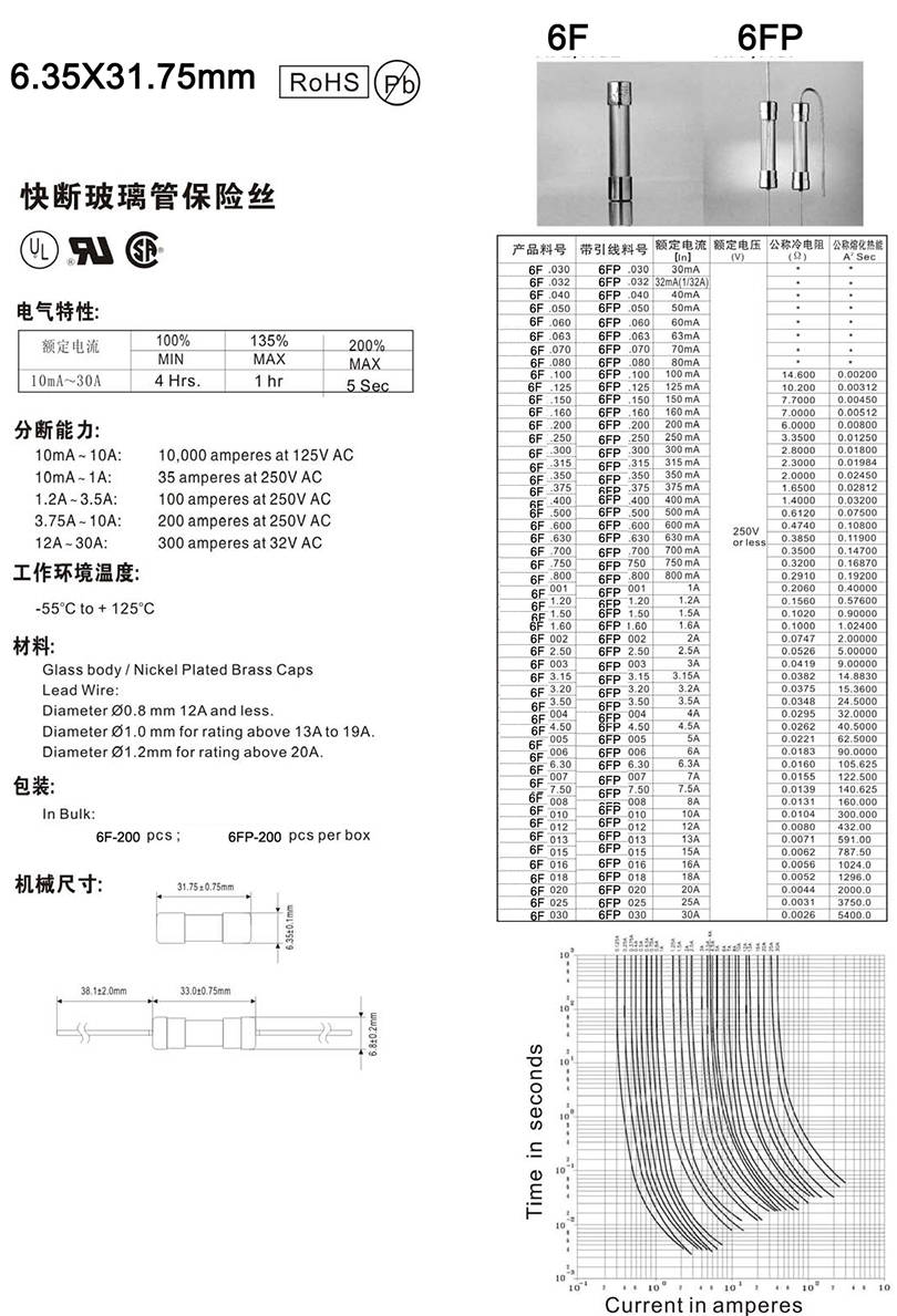 6.35X31.75mm快斷玻璃保險(xiǎn)絲